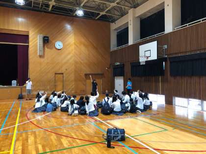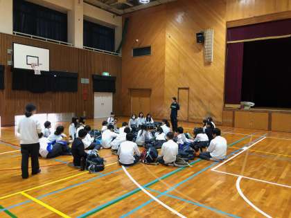 解散式が終わった後、体育館を二手に分けて、クラスごとで終学活を行いました。