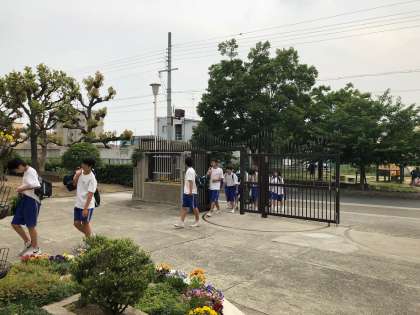 丹波篠山方面へ校外学習に行っていた2年生が、15時ころに、学校に戻ってきました。