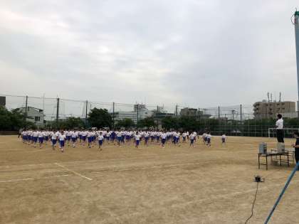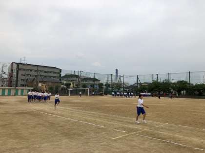 本日の5・6時間目、グランドにて、来週水曜日(6月6日)に実施予定の「体育大会」に向けた全体練習を行いました。