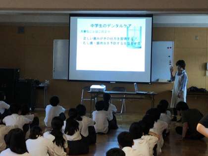 本日の6時間目、1年生では、YT(矢田タイム)を活用して、保健室の村上先生による「デンタルケアガイダンス」に取り組みました。