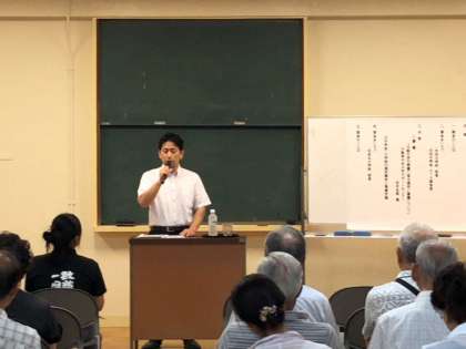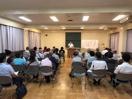 会場には、地域のみなさんや、矢田中校区のPTAおよび教職員、約50名に集まっていただきました。