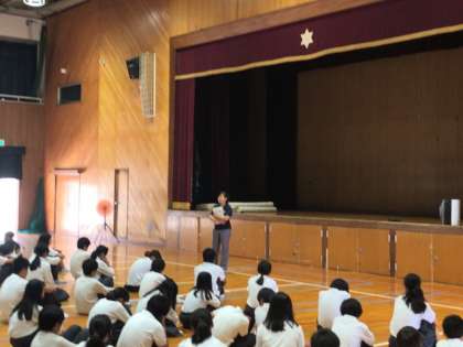 校長先生からのお話では、夏休みを有意義に過ごすことや、防災の取組を夏休みに行うこと、また、東住吉区の事業で、中学生のニュージーランド派遣(3週間)に参加する生徒の紹介がありました。