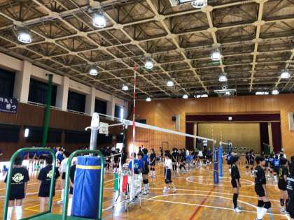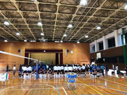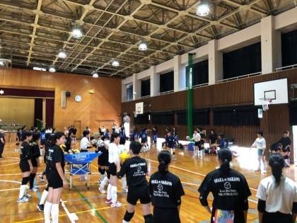 バレーボールの強豪校である建国高校の先生の指導のもと、高校生にもサポートしていただき、日頃の練習では得られない経験ができているようです。