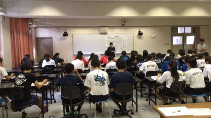 本日午前、大阪市立平野中学校を会場に行われた、バレーボールの審判講習会に、本校女子バレーボール部の1年生が参加してきました。