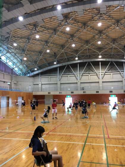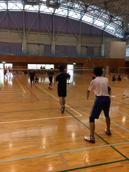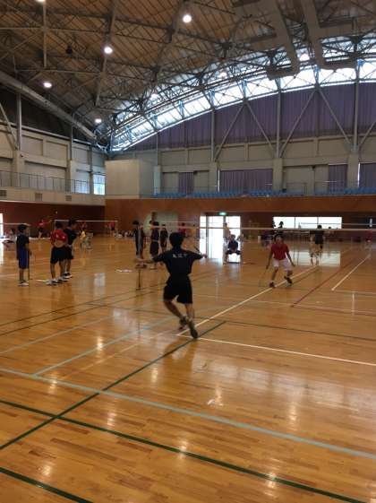 本日、バドミントン部は、河南町立総合体育館にて、合同の練習試合に取り組みました。