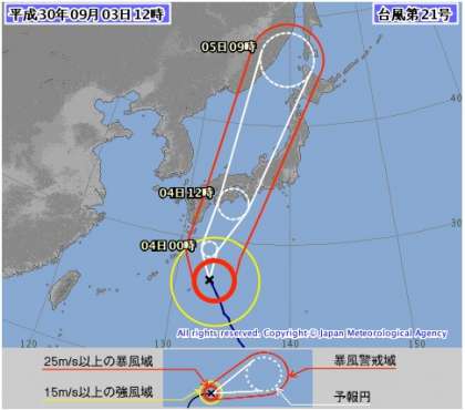 台風21号が近畿地方付近に接近しており、明日(4日)にかけて、大阪市に暴風警報や特別警報が発令される可能性があります。その場合は、以下の通りとします。保護者の皆様のご理解・ご協力をお願いいたします。