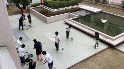 早く登校した生徒のみなさんが、先生たちと、校舎内外の後片付けに協力してくれました。
