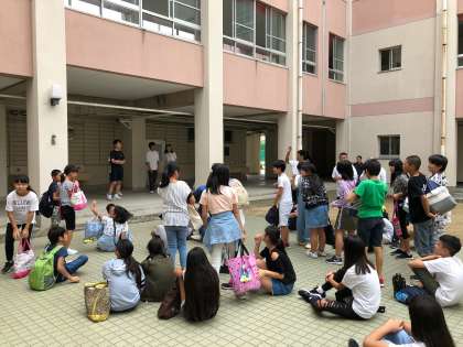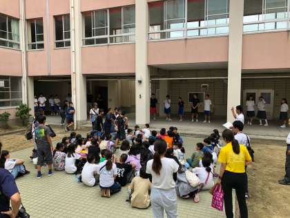 再度中庭に集合して、各部活動のキャプテン部長の引率で、部活動体験の始まりです!