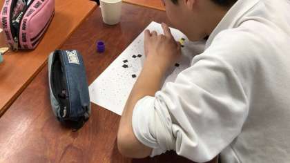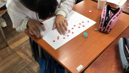 先日は、色紙を細かく切っていましたが、本日は、それを台紙に貼り付けていっています。