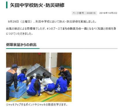 先週の土曜日(9月29日)の土曜授業にて、2年生が取り組んだ「地域防災訓練」の様子が、指導にあたっていただいた東住吉消防署のホームページでも紹介されています。