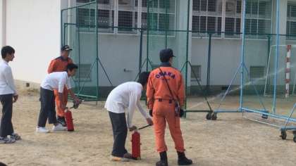 また、水消火器を使った訓練も行いました。
