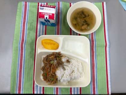 10月24日(水)の給食です!! 公開日 2018/10/24 更新日 2018/10/24 お知らせ 本日の献立は、 ピリ辛丼、中華スープ、黄桃(缶)、牛乳 でした。 ごちそうさまでした!! いいね(0)