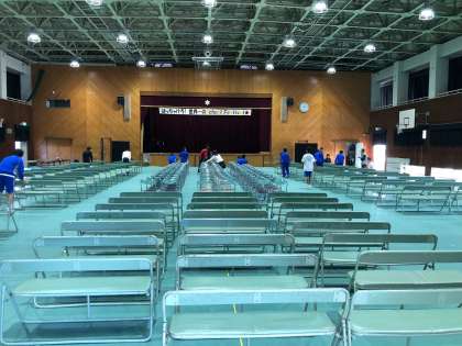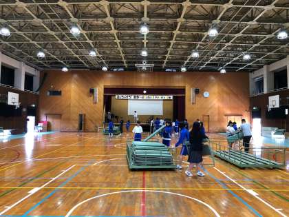 体育館の準備は2年生、周辺の清掃に1年生が担当してくれました。