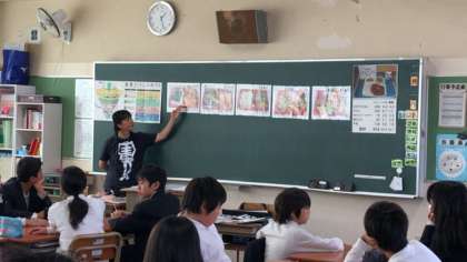 おもな内容としては、「栄養のバランスを考えながら食事をとることの大切さ」と「朝食をとることの大切さ」を、さまざまな教材を提示しながら、具体的な食事をもとに分かりやすく説明をしていただきました。
