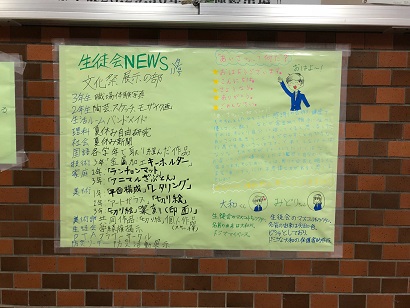 先月から玄関掲示の始まった「生徒会NEWS」が11月号に更新されました。