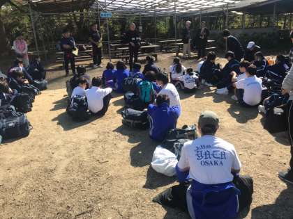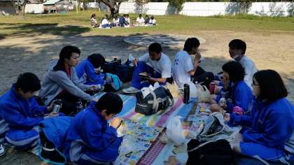 朝から、「ふれあいステイ」に出発した、生活ルームの7名は、引率の先生と共に、会場である「大阪市立信太山野外活動センター」に無事に到着し、お弁当を食べました。