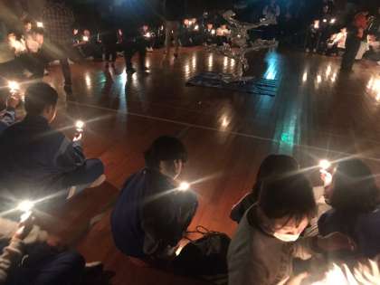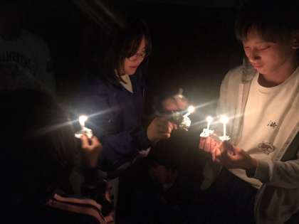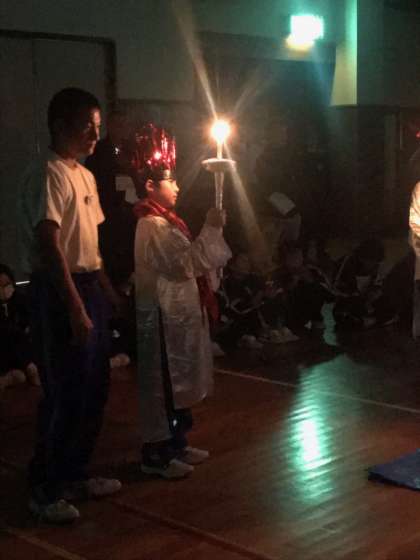 夜のプログラムは、「キャンドルファイヤー」でした。いろいろなこと学校のみなさんと仲良くそして楽しい時間となったようです。