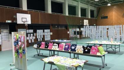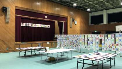 体育館では、文化祭の展示発表が行われます。授業参観時間中(8時50分〜11時)は、保護者のみなさまはご自由にご鑑賞いただけます。(スリッパ等の上履きをご準備いただきますようお願いします。)