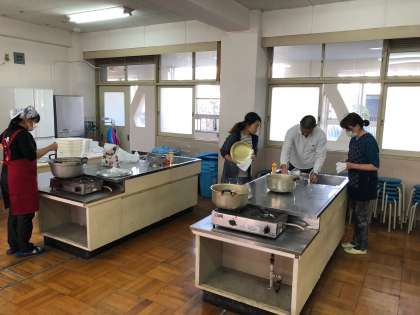 本日より、月1回のペースで行うことになった「土曜寺子屋」とセットで取り組む「寺子屋食堂」の準備も、調理室で始まっています。