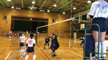 女子バレーボール部は、本日午前、大阪市立堀江中学校(西区)を招いて、練習試合に取り組んいます!!