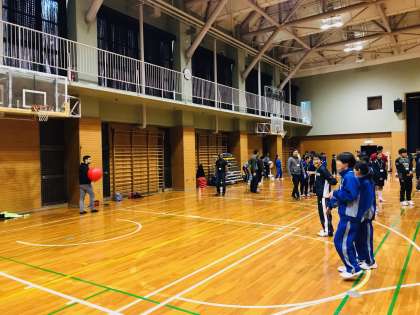 体育館では、さまざまなゲームに取り組んで、英語を楽しみました。