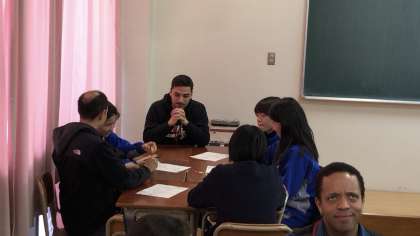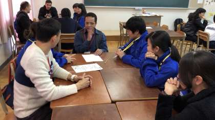 教室では、グループごとに、英語を使って会話をしたり、クイズをしたりして、楽しみました。