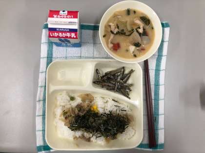 れんこんのちらしずし、ぞう煮、ごまめ、牛乳