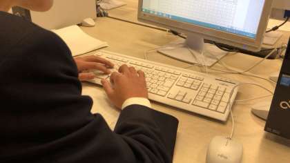 そこで、冬休みの宿題になっていた下書きを、清書するために、パソコン教室にて入力作業に取り組みました。