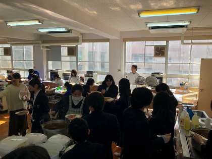 調理のみならず、配膳にもPTAボランティアさんたちが協力していただいています。