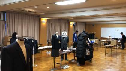 新入学保護者説明会終了後の午後4時から午後6時に、4階の多目的室にて、「標準服(制服)」や「体操服」などの採寸と申込みが行われました。