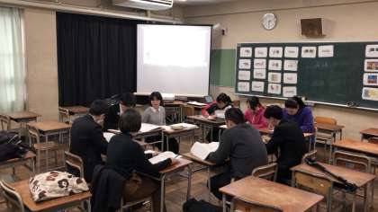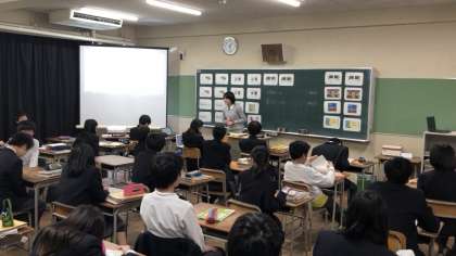 本日午後、大阪市教育委員会が主催する英語イノベーション研修会の研究授業と研究協議が行われ、2年2組にて縄手先生の授業がありました。