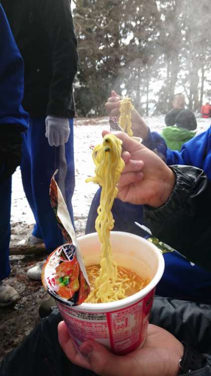 山頂では、お湯を沸かして、持参したカップラーメンで体を温めたようです。