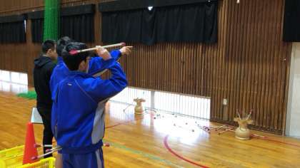 続いて、「遊び体験」の様子で、「トゥホ」という矢を的(入れ物)に向かって投げる遊びです。