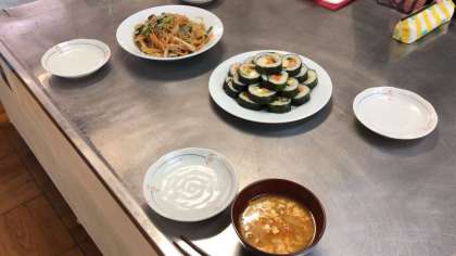 本日のメニューは、「スンドゥブ」「キンパ」「チャプチェ」「ホットック」と盛りださんでした。