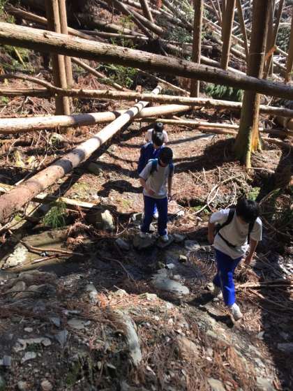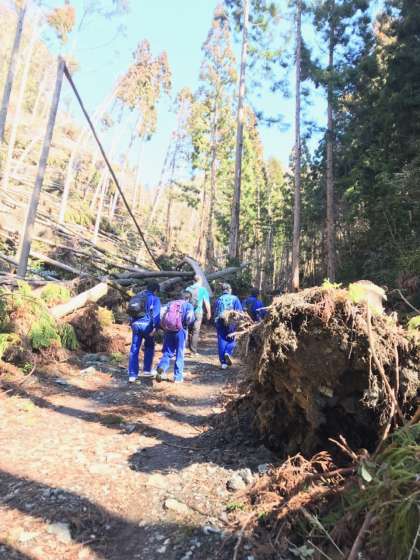 昨年の台風の影響でしょうか、倒木がたくさんある山道を登っています。