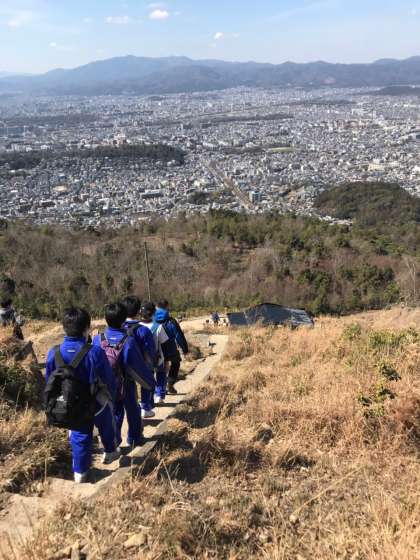 京都の大文字山を山科側から登頂した本校登山部は、市街地に向かて下山しました。