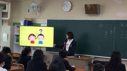 本日、1年生では、2時間目に2組、3時間目に1組にて、異文化理解をテーマに、民族講師(ソンセンニム)からお話をうかがい、文化や歴史の違いを互いに認め、尊重しあうことの大切さを考える時間をもちました。