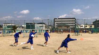 風が強くて、思うようにディスクを投げることが難しかったようですが、みんなが楽しそうに取り組んでいました。