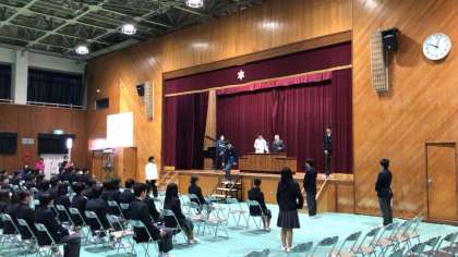 生徒会主催の「3年生を送る会」が終了した後、同じ体育館にて、卒業式の予行が行われました。