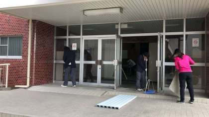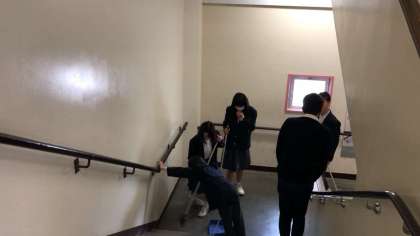 体育館のみならず、校内各所の清掃活動や、式場座席の再整列など、係ごとに分かれて準備が進められています。
