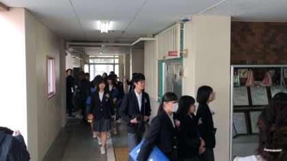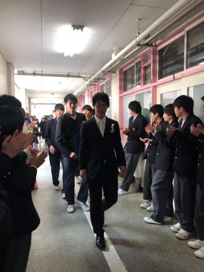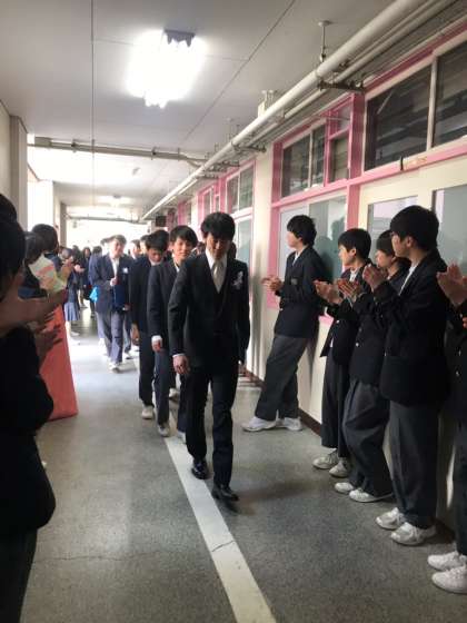式が終わった後、廊下に在校生や保護者のみなさんで花道を作って、卒業生を送り出しました。