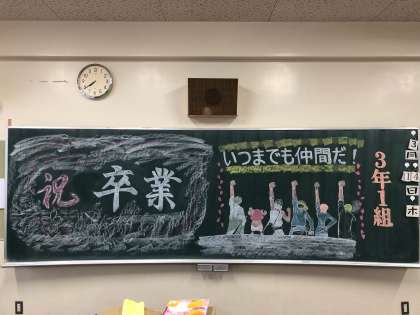各クラスの担任の先生からは、その時のために、前日夜に、みんなへの気持ちを込めて、黒板を次のようにしていました・・・。