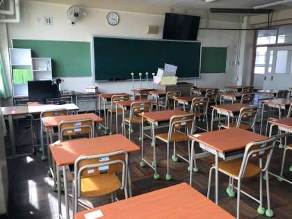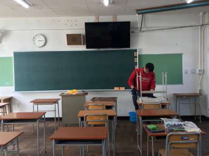 本年度は、全普通教室に大型モニターが設置され、教室での授業で活用されるようになります。春休み期間中に教室整備が行われています。皆さんの登校を待っています。