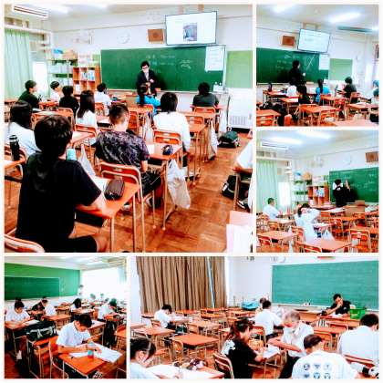 7月22日(火)、3年生の夏季講座午前は、「理科」の学習会。午後は、「社会科」の学習会。1年生では、自主学習会で夏休みの宿題に取り組んでいました。