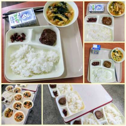 10月9日(木)、今日の給食献立は、ご飯、和風ハンバーグ、金時豆の煮物、五目汁、牛乳です。エネルギー:748kcal。たんぱく質:28.1g。脂質:22.0g。糖質:105.0gです。『給食で使われる豆』世界には、食べられる豆が70から80種類あるといわれています。大阪市の給食で使われる豆を紹介します。小豆、大豆、黒豆、とら豆、白花豆、大福豆、うずら豆、てぼ豆、金時豆の9つです。