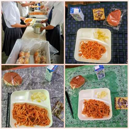 10月16日(木)、今日の給食献立は、ミニコッペパン、イタリアンスパゲッティ、サワーキャベツ、カレーフィッシュ、牛乳です。『カレーフィッシュ』は、国産のカタクチイワシを使用しています。イワシには、骨や歯をつくるもとになるカルシウムが多く含まれています。歯ごたえがあるので、しっかりよくかんで食べましょう。エネルギー:660kcal。たんぱく質:30.7g。脂質:21.5g。糖質:77.7gです。