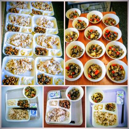 12月5日(金)、今日の給食献立は、かやくご飯、かぶの柚子風味、じゃこ豆、鶏肉と野菜の煮物、牛乳です。『かぶ』は、アブラナ科の植物で、白菜、菜の花、キャベツなどの仲間です。白くて丸い「小かぶ」が一般的ですが、赤や紫など、さまざまな色や形、大きさの品種があります。「かぶ」は、年間を通して流通していますが、冬が旬の野菜です。寒い時期にとれるかぶは、甘みがあり、おいしくなります。【なにわの伝統野菜の一つである「天王寺かぶら」は、大阪市天王寺付近で初めて作られたといわれています。】エネルギー:790kcal。たんぱく質:32.4g。脂質:19.0g。糖質:110.6gでした。