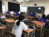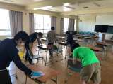 マスクを着用し、ハンカチかタオル(手洗い時)、体育館シューズ、筆記用具を持参して...