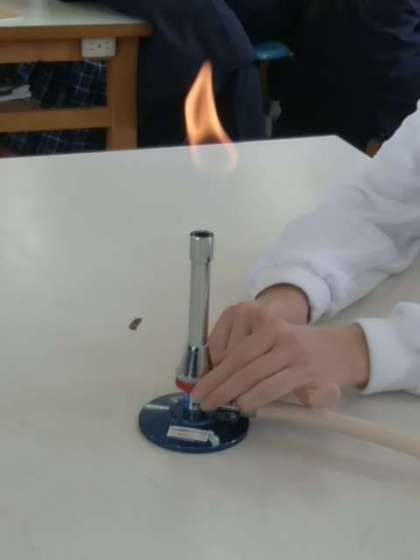 ガスバーナーの点火と炎について学びました