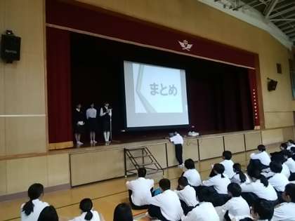 5月13日(月)全校集会では、「いじめについて考える日」の取り組みがありました